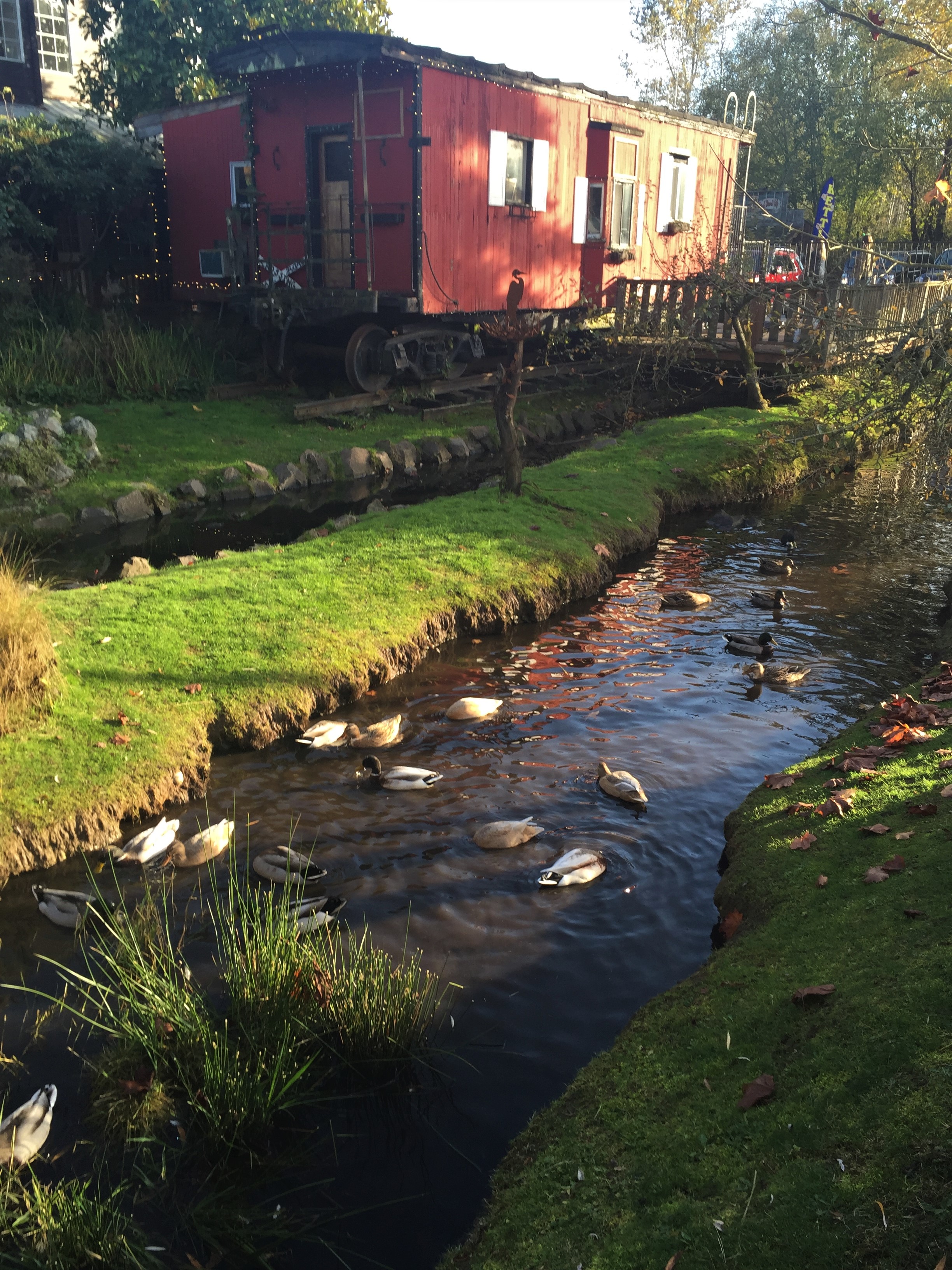 My family first visited Country Village, a unique attraction in the Washington town where we lived, when our daughter was a squealing toddler who followed chickens across the grass. She had no hope of catching them, and so she turned her attention to riding the spring-horses embedded in the playground. The unique shops owned by artisan crafters, restaurants, and pathways winding through gardens and ponds drew my attention. Country Village first opened in 1891, and its streets resemble an Old West town. An eclectic mix of historic buildings, train cars, and even a tugboat now serve as shops.